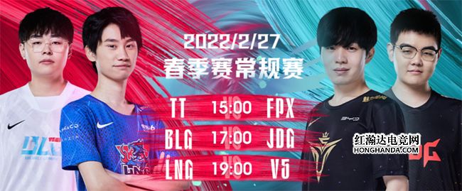 北京时间2月27日,LPL春季常规赛第六周迎来收官日:下午15:00,排名垫底的TT挑战“东部第一”FPX,哪支队伍会终止连败?17:00第二场由JDG对阵BLG,369、Breathe上路争锋;19:00收官战,LNG直面5连胜的V5,Doinb、Rookie两位S赛冠军中单强强对话!