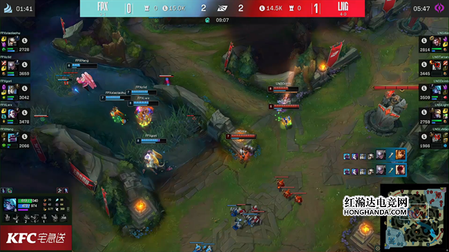 火龙再次刷新,LNG完全掌控局势轻松拿到小龙,随后向在附近徘徊的FPX发起追击团战,再次打出团灭。FPX没有了任何翻盘的手段,LNG众人陆续蚕食掉三路高地,随后冲泉将FPX团灭一波结束比赛,取得1:0领先。