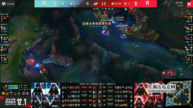 双方比较平静地过度到8分钟出头,V5野辅在中路抓死了飞机拿到一血,而另一侧前来支援的剑魔在河道同样遭到WBG上野辅的堵截送掉人头。血量状态更好的V5接盘拿到峡谷先锋,顺便还找到机会击杀了洛。V5各条线都开始逐渐打出压制力,剑魔在上路直接越塔单杀了赛恩,自己被防御塔换掉,没有让赛恩吃到人头。V5放出峡谷先锋推掉中路一塔,为接下来打开野区视野做好了准备。