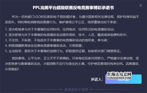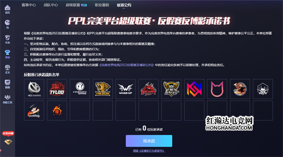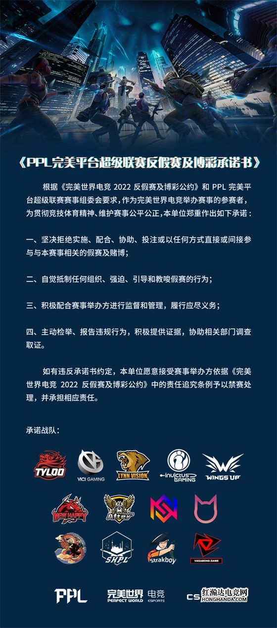《PPL完美平台超级联赛反假赛及博彩承诺书》及联合签署战队: