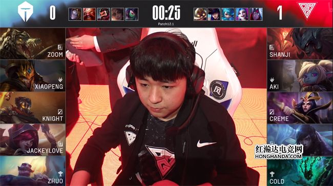 开局皇子3级抓中,打出妖姬的被动和闪现。虽然TES上、中两线压制力十足,但下路却沦为突破口:OMG双人组升到3级后锤石先手Q钩中布隆,配合厄斐琉斯的坠明禁锢拿到一血,波比灵性绕后再收霞,TES下路一波炸裂。