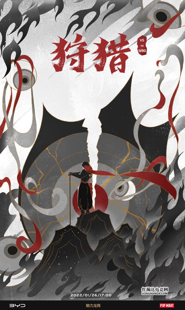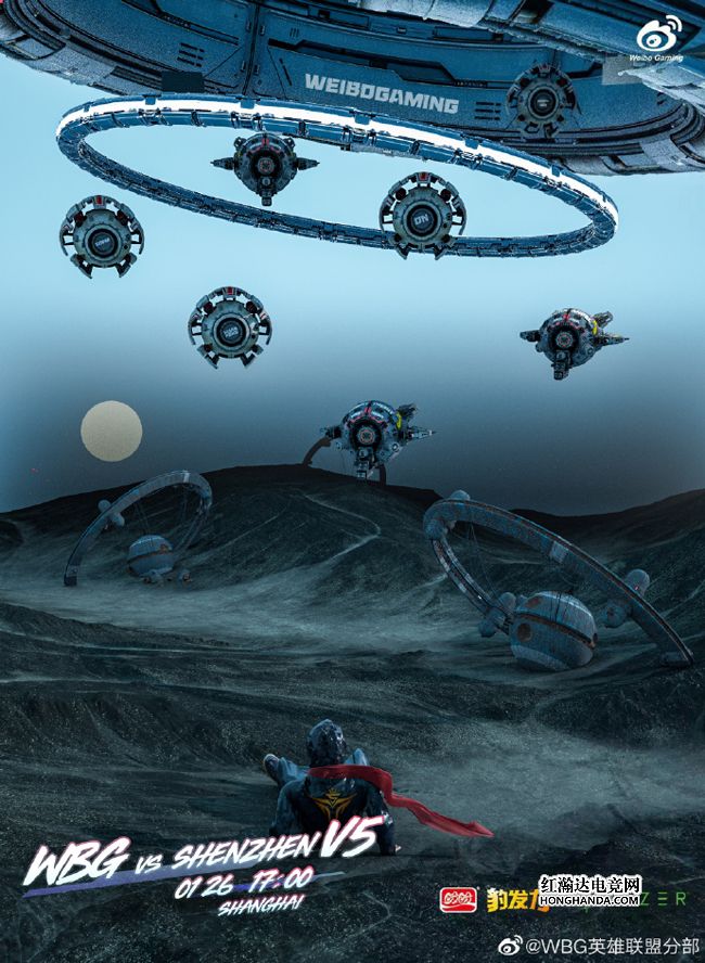 WBG的海报标题是“攻陷”,身穿V5队服的宇航员所在星球遭到WBG舰队的“入侵”,WBG母舰放出的战机陆续在V5星球着陆,战机上皆是队员们的ID。“LPL艺术家”WBG近期2连胜状态不错,本场最大的看点自然是Shy哥和iG时期的老队友Rookie两人之间的“相爱相杀”,Rookie是否会去上路“关照”TheShy呢?