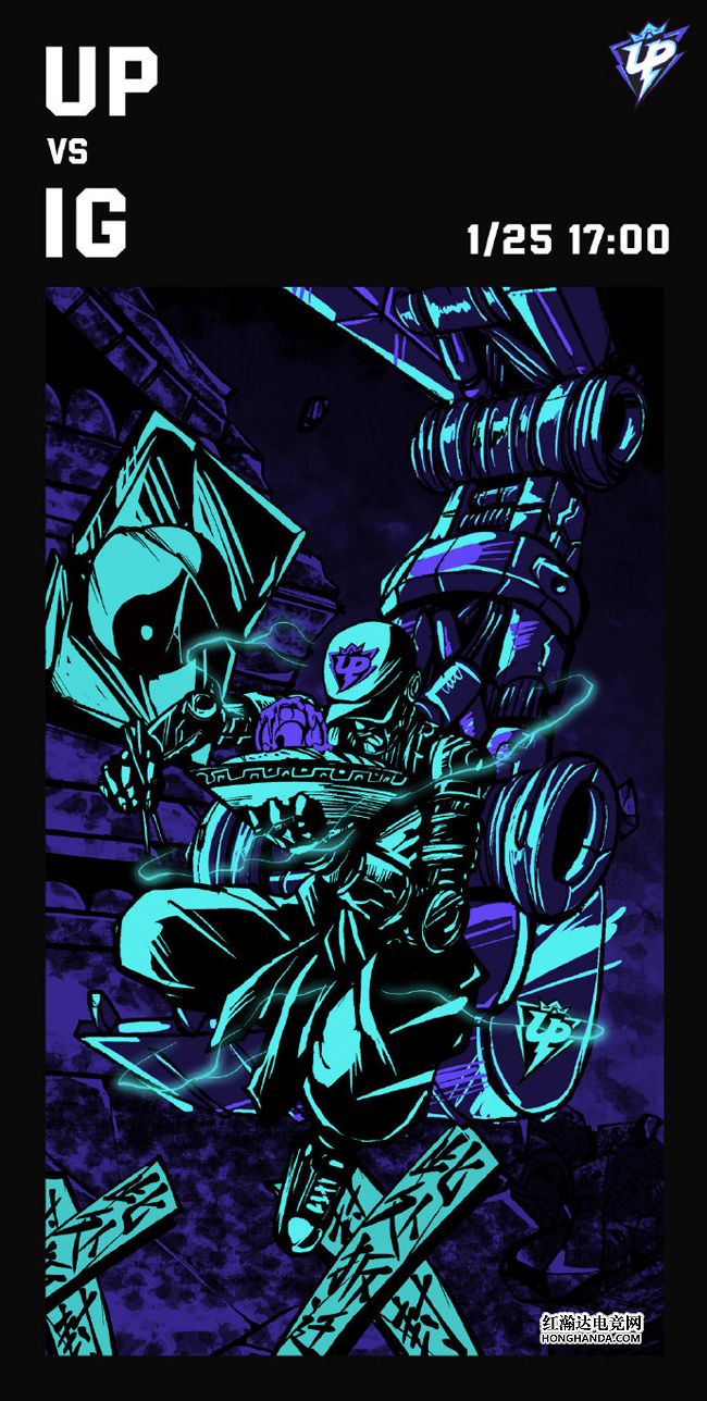 UP的海报标题为“违章建筑”,海报和iG的《闪电侠》主题海报隔空联动,UP化身《闪电侠》第四季的大BOSS——“思考者”,坐在自制的摇臂上准备品尝插着iG队标的胜利果实,左侧屏幕上的太极图也暗示UP将拿下比赛。开赛三连败的UP终于从“劫富济贫”的LGD手中拿到了春季赛首胜,不知他们能否以2连胜在年前圆满收官呢?