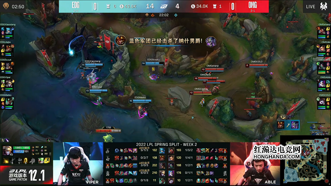 Viper伊泽瑞尔精准操作打穿下路,EDG势不可挡2-0战胜OMG