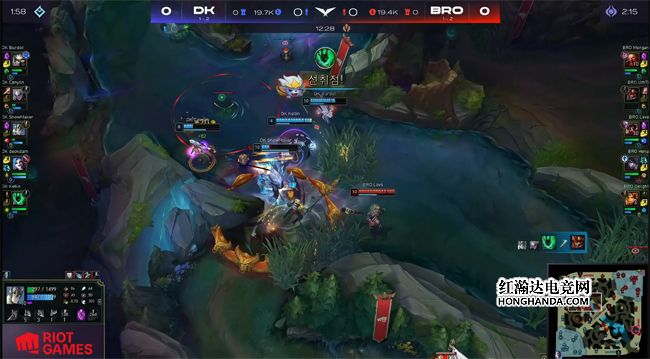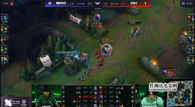 北京时间1月22日,LCK春季赛第二周第四日的首场对决是积分同为1-2的“难兄难弟”DK、BRO正面交锋!首局虽然BRO的控龙节奏完美,但拿到大龙后自家中路水晶反被DK强拆,DK针对Morgan的酒桶打开了局面,最终在龙魂团战中团灭了BRO,有惊无险2-0获胜!