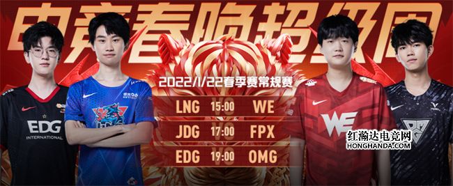 北京时间1月22日,LPL春季赛第二周迎来“超级周六”:下午15:00,WE阻击三连胜LNG,新人AD Xing交手Light;17:00的第二场由JDG挑战三连胜的FPX,Hope、Lwx正面对决;晚上19:00,EDG首发上单Xiaoxiang率队冲击四连胜,“黑暗势力”OMG能否掀翻S11冠军?