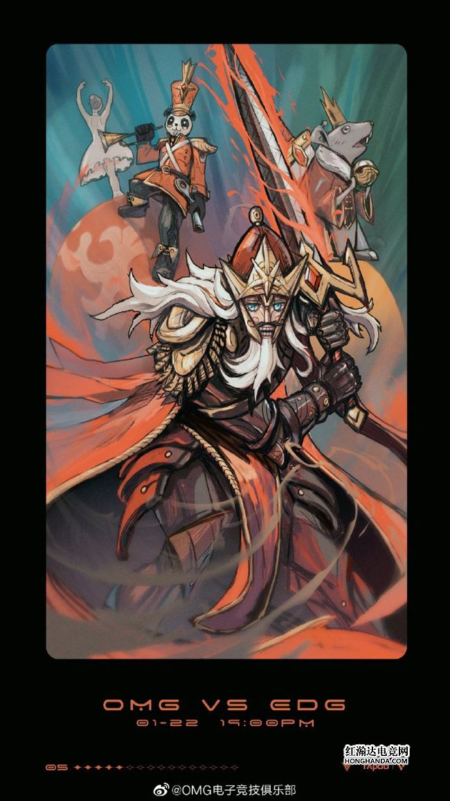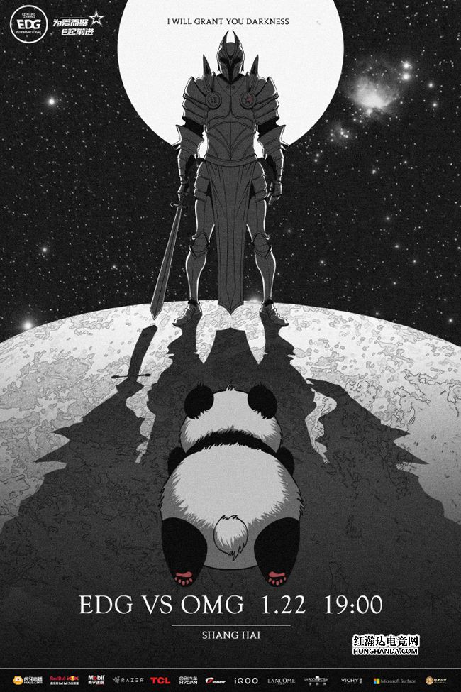 EDG的海报标题为“真正的黑暗,将由我来展示!”手持长剑的骑士立于满月之下,被月光拉长的身影完全笼罩了倒在地上的OMG吉祥物大熊猫,这场较量似乎已成定局。除了LNG和FPX以外,LPL最后一支三连胜的同时还保持着不败金身的正是EDG,本场首发上单再次更换为Xiaoxiang,他和包揽了第一周MVP、最佳上单、最佳新秀得主shanji的交手绝对值得期待!