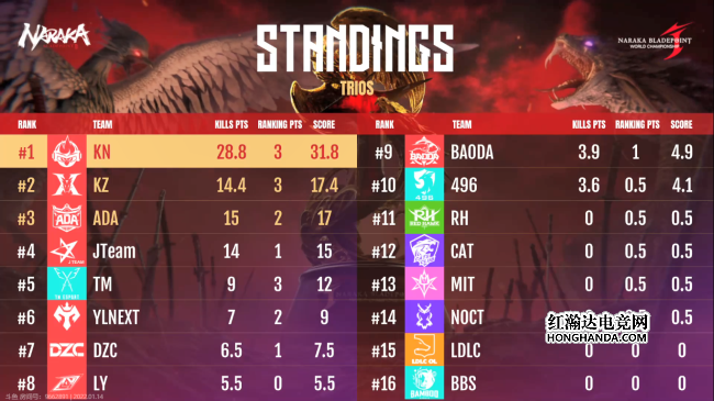 永劫无间全球总决赛三排赛DAY1第一场:KN斩获高分拿下开门红