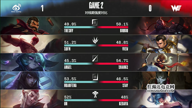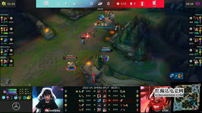 2022 LPL春季赛常规赛第一周第三日,WBG战队与WE战队共同迎来他们的赛季首战,WBG战队从SN更名以后基本保持了原本的主力阵容,上单位引进了S8冠军选手TheShy,本赛季的表现令人期待,而WE战队在转会期经历了较大程度的人员流失,新阵容的表现还有待考验。WBG在两局比赛中都在对线期取得了优势,利用团战强大的配合能力击败WE,比较轻松地2-0击败WE赢下首胜。