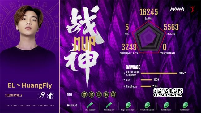 本局战神自然给到炎神EL丶HuangFly。他出色运营以及冷静的头脑,让他斩获不朽荣光。