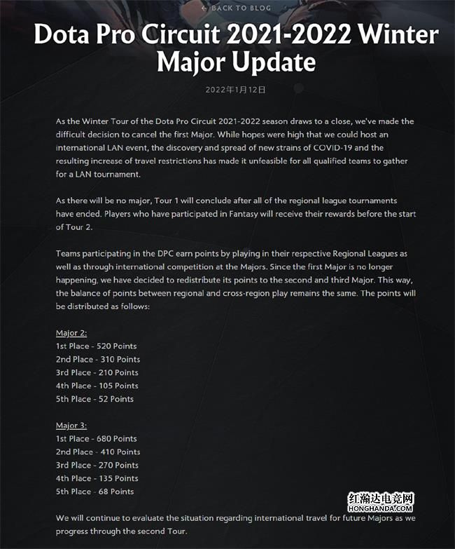 此前有传闻DOTA2新赛季首个Major可能会“鸽”的消息,今天V社终于发布公告,正式宣布首个Major取消。