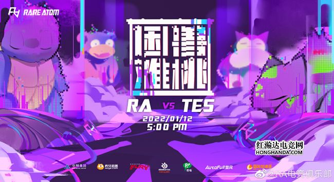 RA的海报标题为“困兽难桃”,谐音“逃”的“桃”字指对手为TES。象征着TES众选手的神奇宝贝们,如妙蛙种子(Tian)、杰尼龟等全都被困在了RA的紫色力场当中,战况似乎全在RA的股掌之中。RA在转会期可谓“损失惨重”——“院长”中单FoFo和“副院长”辅助Hang双双离队,Strive、Zorah这两位新人小将临危受命,期待他们在自己LPL首秀中的精彩发挥!