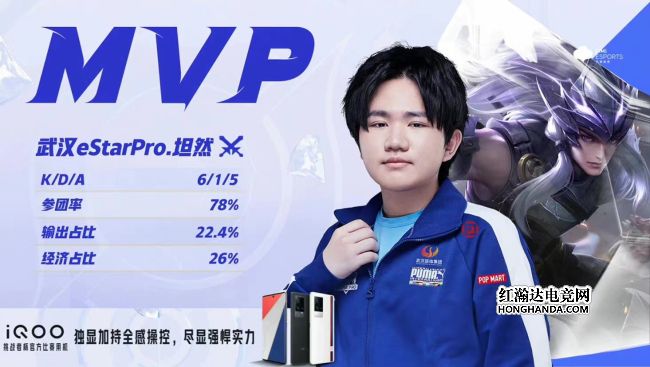12分半,云缨一套技能打满伤害吃到子阳太乙真人复活后站起,夏侯惇收割二连击破,TES外塔全部被破,13分10秒,云缨拿下暗影暴君,13分40秒,雨辰嬴政站位靠前被集火,14分10秒,TES连掉中下两路高地被破,镜交一技能后被控死倒地,弈星框住牛魔,云缨二连击破,夏侯惇大招定住伽罗,关羽马腿被断被弈星炸死,TES连倒四人仅剩嬴政,eStar推掉敌方水晶,来到赛点局。本局最佳给到武汉eStarPro.花海的云缨