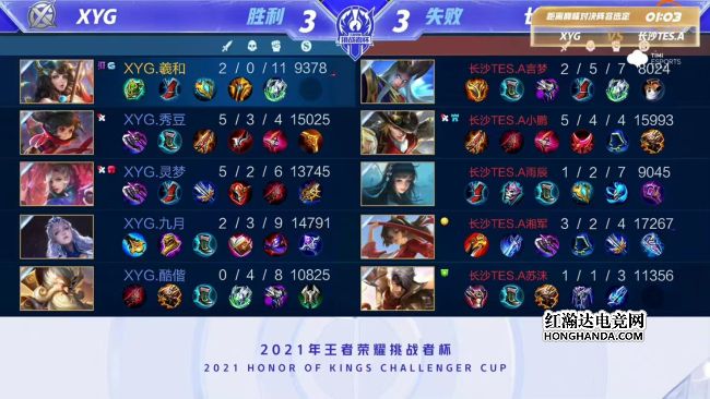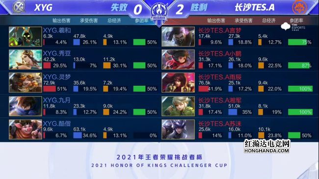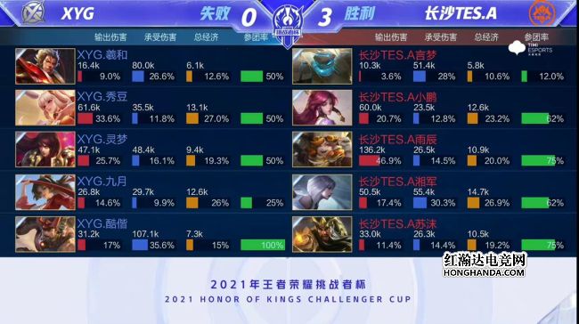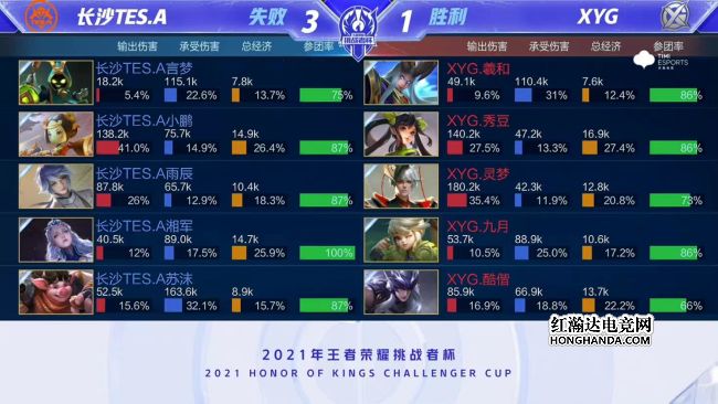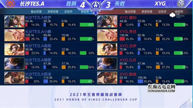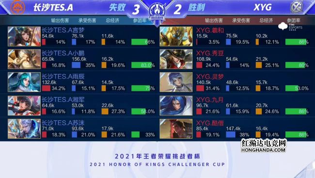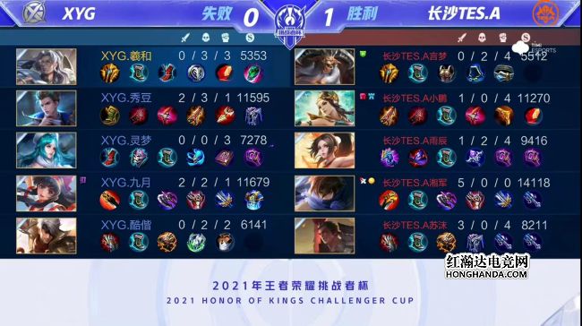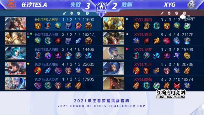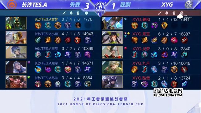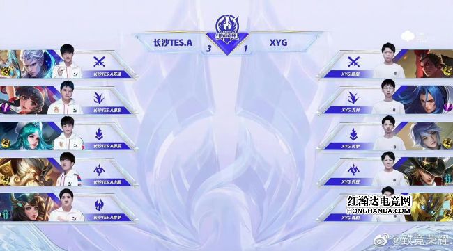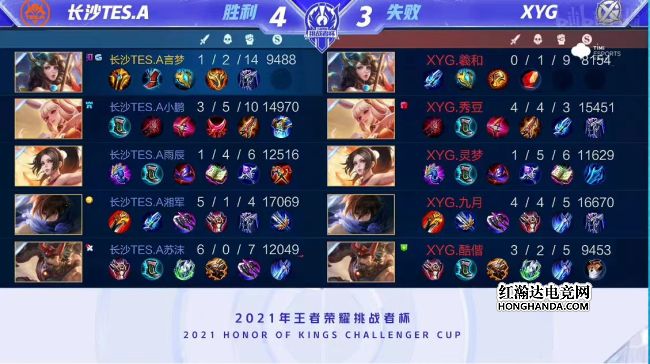 2021年王者荣耀挑战者杯四分之一决赛今日开战,首场比赛由XYG对阵长沙TES.A,赛制为BO7。最终,长沙TES.A四比三战胜XYG,长沙TES.A复了秋季赛的一箭之仇,惊险挺进四强。
