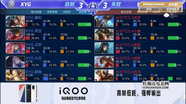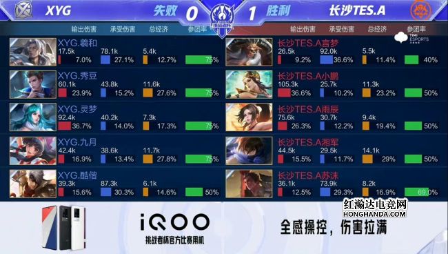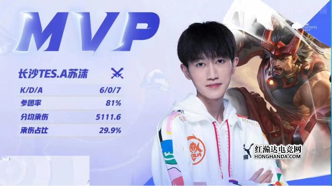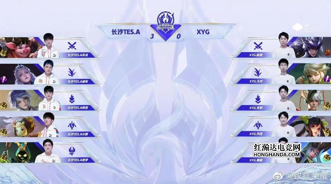 13分钟,小鹏虞姬拿下暗影暴君,15分钟,澜拿下暗影主宰,不知火舞一闪踢三人,澜大招推两人二连击破,娜可露露扑出澜复活甲,澜站起一二技能再杀娜可露露,TES二换三XYG,16分钟,夏侯惇切虞姬失败被反包,不知火舞踢死夏侯惇,澜刮死鲁班大师,XYG前排全部倒地。16分半,XYG下路高地被破,TES五打三选择一波,牛魔大招逼位置,TES推掉敌方水晶,拿下首局比赛胜利。本局最佳给到长沙TES.A.湘军的澜
