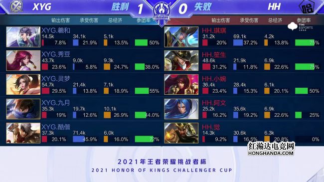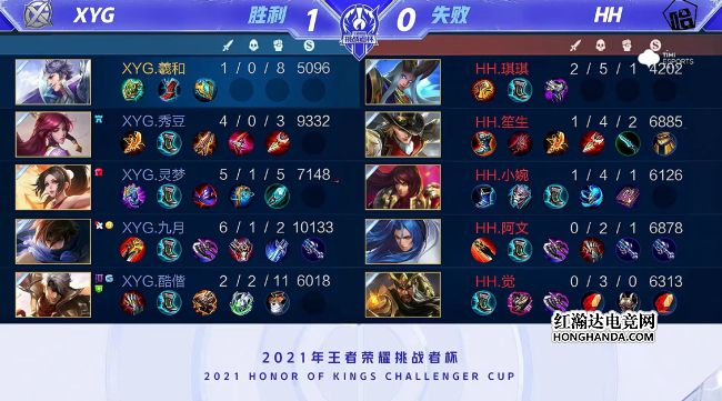 2021年王者荣耀挑战者杯选拔赛第四个比赛日第七场比赛由XYG对阵HH,赛制为BO1。最终,XYG战胜HH,掌握晋级主动权。