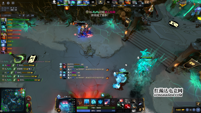 决胜局RNG拿出火女加血魔中期发力双核,IG选出火猫、剃刀加黑鸟三核阵容。对线期IG重点帮助控符,但Emo火猫还是被Maybe火女压制。过了对线期RNG出色的战场阅读能力让IG几次扑了空。18分钟IG打掉肉山,三核平分发育过度关键装备,反观RNG这边仅有火女独肥。26分钟RNG中路抓住机会,血魔开大溜给剃刀被火女活活A死,可惜后续状态不佳没能控盾。后续双方围绕肉山争夺,IG开雾绕后双倍火猫冲脸乱杀后控盾。