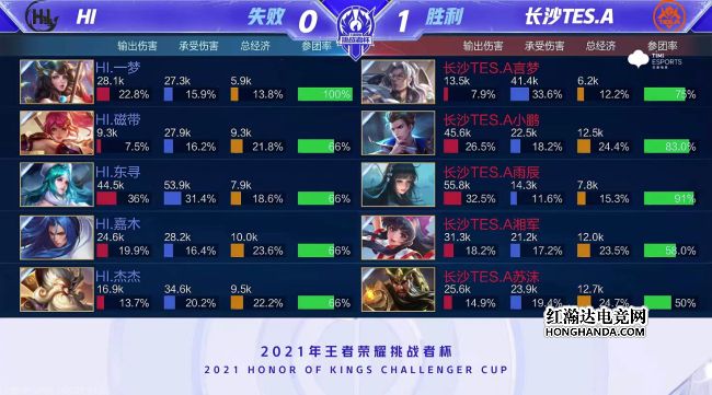 2021年王者荣耀挑战者杯选拔赛第四个比赛日第五场比赛由HI对阵长沙TES.A,赛制为BO1。最终,长沙TES.A战胜HI,长沙TES.A六连胜成功晋级挑战者杯正赛。