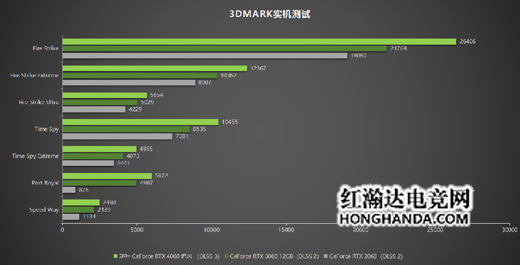 将耕升 GeForce RTX 4060 追风的3DMARK 基准测试同时与GeForce RTX 3060 12GB和GeForce RTX 2060 进行比对。从基准测试中不难发现,耕升 GeForce RTX 4060 追风在各项测试中都比前代的同等级显卡有一定的提升,在部分测试中能力的差距相当显著。例如 在Fire Strike测试中,耕升 GeForce RTX 4060 的测试评分就一度来到了26406分,Fire Strike Extreme也来到了12367分,可见耕升 GeForce RTX 4060 追风在性能上拥有肉眼可见的提升。