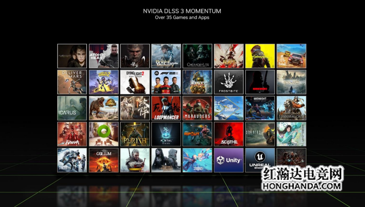 作为40系显卡独有的DLSS 3包括全新的帧生成技术、DLSS 2超分辨率技术和NVIDIA Reflex技术,不仅提供了画质更好的体验,还能够利用全新的DLSS 卷积自动编码帧生成器无中生有创造全新的游戏帧。在三百余款支持DLSS技术的游戏与应用中,已有30款以上的游戏与应用对DLSS3进行了支持。
