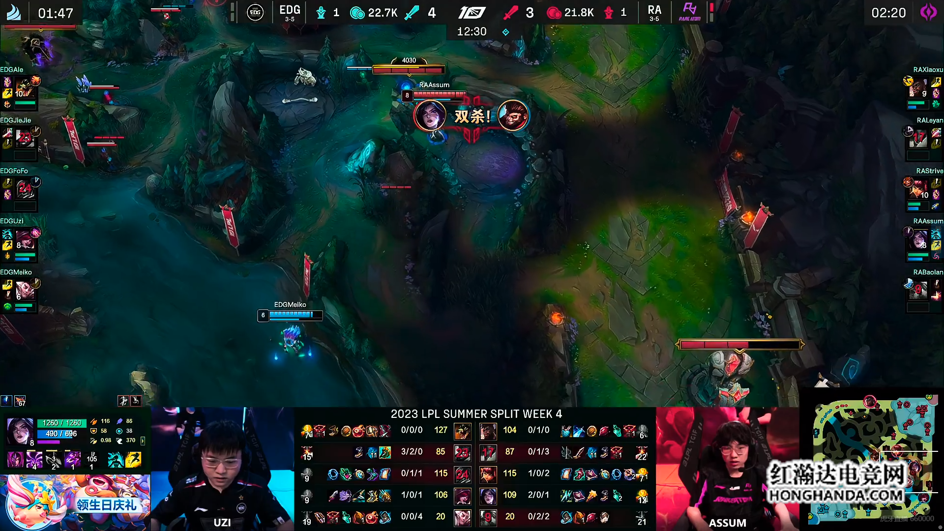 Uzi霞开局双杀掌控比赛,EDG让一追二战胜RA