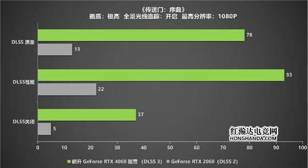 游戏内华丽的画面效果,则需要大量的性能提供支持。GeForce RTX 2060在运行《传送门:序曲》RTX版时,明显的遇到了一些问题。即使是在开启DLSS的情况下,运行开启了全景光线追踪的《传送门:序曲》RTX版也是相当的吃力,游戏运行时的帧率仅仅只有22帧,已然无法流畅的运行。而耕升 GeForce RTX 4060踏雪则在这项测试中,同前者拉开了相当巨大的差距。在开启DLSS 3性能模式后,游戏的帧率来到93帧,二者之间的性能差距,通过观察数据一目了然。DLSS 3作为NVIDIA研发的黑科技,的的确确的打破现有的性能格局。