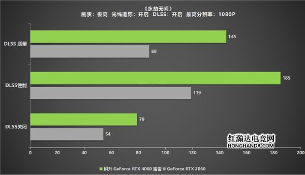 开启DLSS 技术后,耕升 GeForce RTX 4060 踏雪的性能差距将更为明显。通过数据我们可以看到,在《永劫无间》中,耕升 GeForce RTX 4060 踏雪在开启DLSS 性能模式的情况下,帧数来到了惊人的185帧。而在DLSS质量模式下,耕升 GeForce RTX 4060 踏雪在保证流畅的同时,画面的质量也有一定的提升的同时,帧数也来到来到145帧,耕升 GeForce RTX 4060 踏雪较比GeForce RTX 2060的提升幅度高达30%。可见DLSS 技术的强力性能支持,对于游戏的体验优化相当重要。《永劫无间》官方也提到,将在往后的更新中添加DLSS 3的支持,相信那时耕升 GeForce RTX 4060 踏雪所带给玩家的体验将会更为流畅。