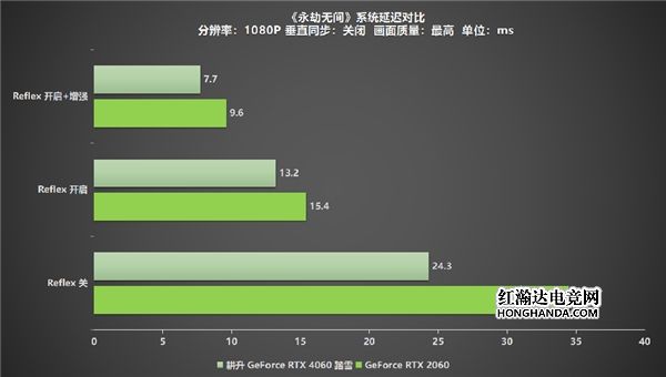 Reflex带给玩家的提升,在《永劫无间》中将更为明显。通过数据可以发现,耕升 GeForce RTX 4060 踏雪在使用Reflex增强模式下,系统延迟将降幅至7.7ms。玩家在拼刀与连招时,将拥有更多的操作冗余,刀剑相拼的反应时间也比此前更多。耕升 GeForce RTX 4060踏雪可谓是玩家们在电竞领域的制胜法宝。