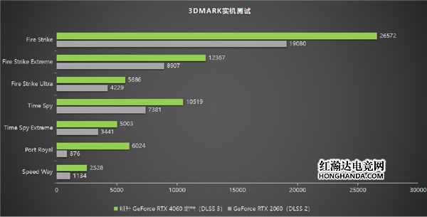 首先我们将使用3DMark进行相关的基准测试,来看看耕升 GeForce RTX 4060 踏雪与GeForce RTX 2060在基础性能上的比较。