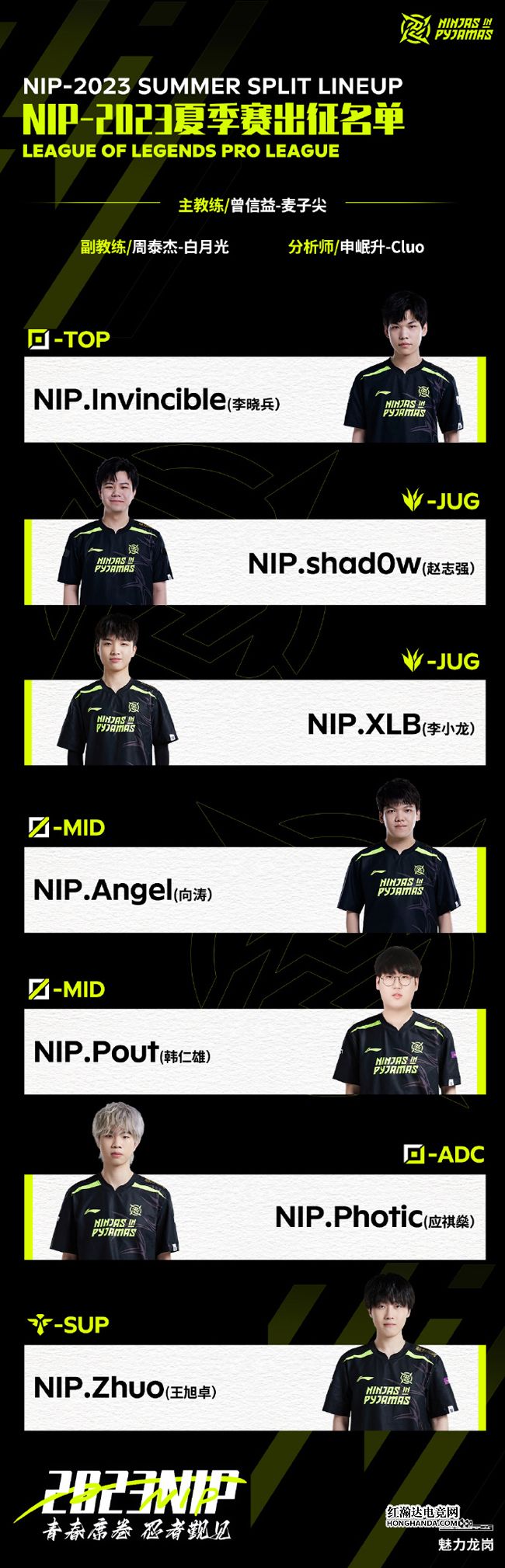2023 LPL深圳NIP电子竞技俱乐部英雄联盟分部夏季赛大名单: