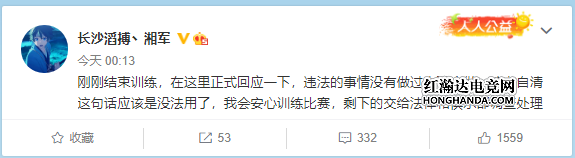湘军本人也对这件事情做出了回应,称没有做过违法的事情,一切交给法律和俱乐部。