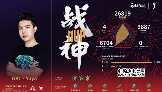 这场比赛GBL拿到不错击杀跟排名分数,战神也是不出意外的给到了最后存活下来的Yaya。