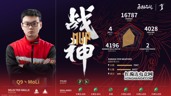 本局战神给到Q9丶MoLi,他关键时刻天海大师金刚伏魔帮助队伍稳住局面,拿到战神毋庸置疑。