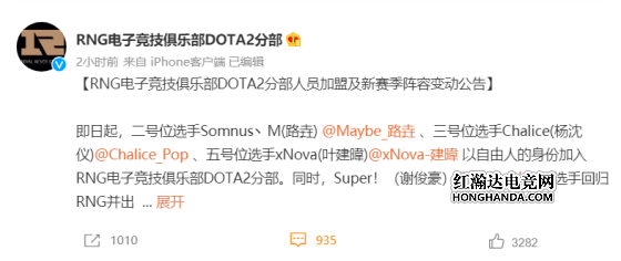 【RNG电子竞技俱乐部DOTA2分部人员加盟及新赛季阵容变动公告】