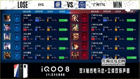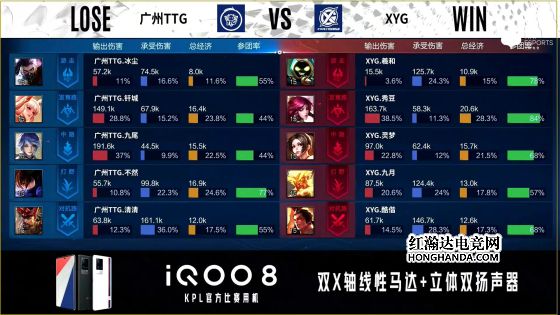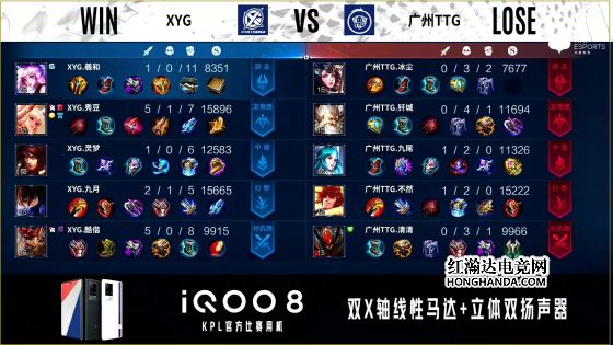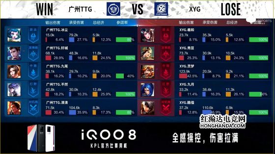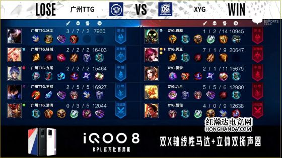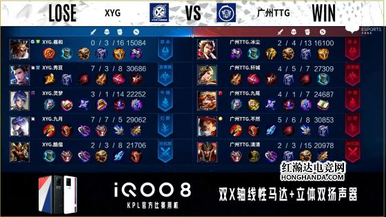 11分45秒,阿古朵拿下暗影主宰,12分半,盾山越高地背回蒙恬完成互换,XYG上路高地被破,13分钟,芈月吃到三人伤害倒地,蒙犽狂轰火线扫死两人,XYG再掉中路高地,13分半,XYG三路高地全部被破,15分钟,蒙犽拿下暗影暴君,盾山二闪背回蒙恬,百里守约一枪狙死蒙恬,李元芳交技能秒掉阿古朵后被火力压制,百里守约一枪再狙死西施,经济压制的TTG推掉敌方水晶,战胜XYG。本局最佳给到广州TTG.清清的芈月