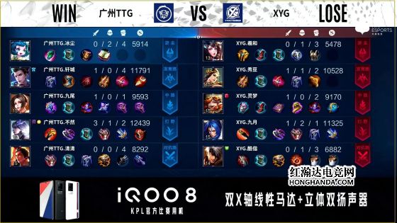 12分半,镜瞬杀橘右京复仇,13分半,钎城狄仁杰拿下暗影主宰,15分钟,XYG外塔全部被破,16分钟,TTG借龙逼团,狄仁杰黄牌命中虞姬,不知火舞大闪进场,虞姬被秒,羲和大乔同样被留阵亡,XYG连掉中下两路高地,16分半,酷偕夏侯惇、橘右京交技能清线接连被秒,灵梦沈梦溪无技能无法清线,TTG推掉敌方水晶,拿下首局比赛胜利。本局最佳给到广州TTG.不然的镜