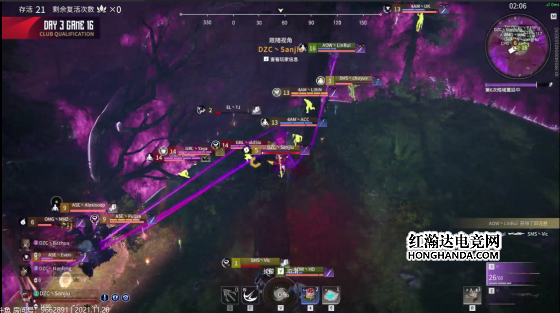 比赛开局,各队频频发生激战,各有胜负。第三次暗域蔓延中,Wolves的NH在暗域外上演经典极限操作,死血存活。
