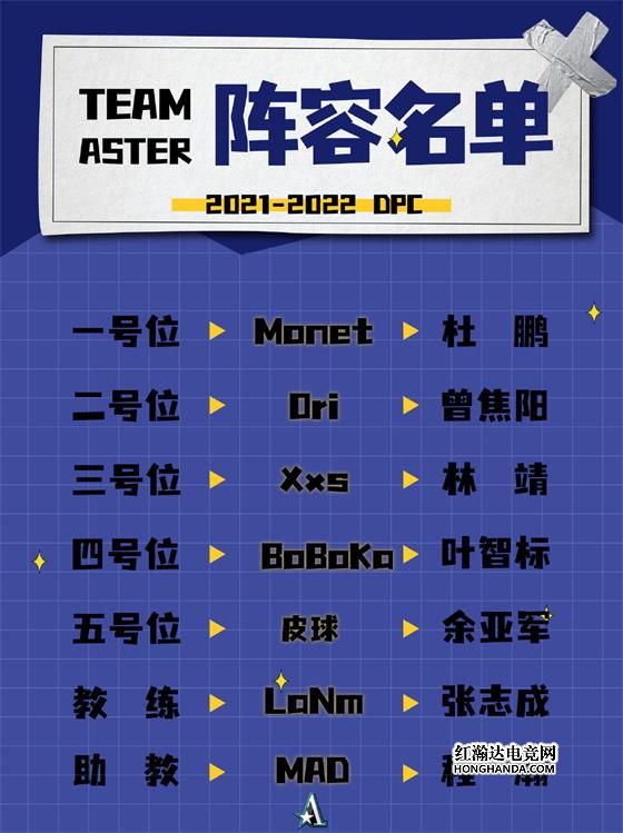 【Aster星辰电子竞技俱乐部Dota2分部新赛季阵容名单】