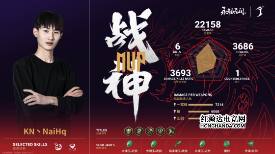 本场战神给到KN丶NaiHq,2万2高额伤害6次击败,拿到战神毋庸置疑。通过这场胜利,KN坐稳总积分榜第一位置!