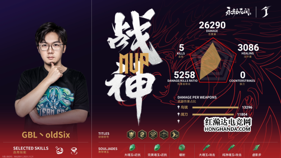 本场比赛战神给到GBL丶oldSix,作为最终存活下来帮助队伍斩获荣光,并且打出2万6高额伤害,这个战胜称号实至名归。