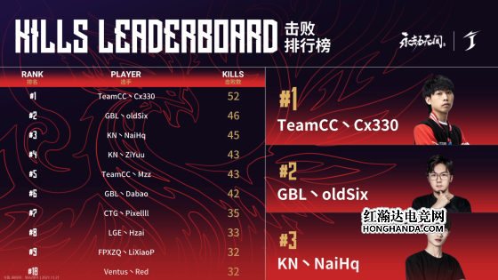 再来看看击败榜,TeamCC丶Cx330依旧无人能敌,连续四天制霸击败榜榜首,个人实力让人不得不服。可能TeamCC之后再强化一下开团选择跟队友间的配合之类的小细节,能让TeamCC的整体实力更上一层楼。