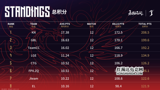 回顾这4天的比赛,KN战队的积分突破了200分大关,总分高达恐怖的208.5分,超过了最后一名Tyloo战队将近5倍的总结分。在每局比赛中KN的队员都能上演精彩操作,明确的选点位跟开团都不虚,频频能在决赛圈中看到他们的身影。