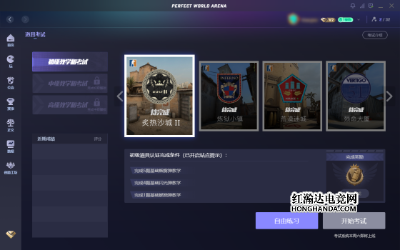 不只有娱乐休闲玩法,针对想要提升水平的玩家,平台特别开发了“道具课堂”模块,投掷物沉浸式训练,从教学到考试一站达成,分等级给予成绩评分,让你针对薄弱环节迅速提升!目前可在平台内体验自由练习,11月27日将上线考试系统,完成考试即可领取专属徽章!