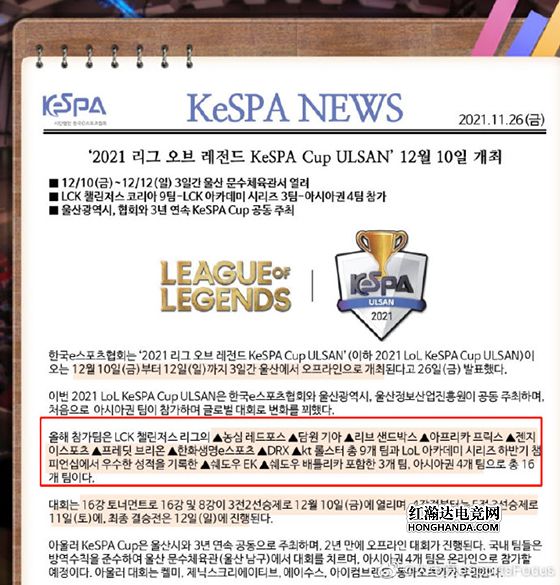 2021韩国KeSPA杯赛程公开:12月10日-12日开战,T1战队将缺席