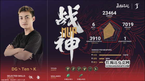 本局战神授予DG、Ten、K。Ten、K本局共打出2W3的伤害,为DG斩获荣光立下汗马功劳。