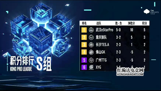 武汉eStarPro、重庆狼队、长沙TES.A、佛山GK获得胜者组名额同时获得挑战者杯参赛资格