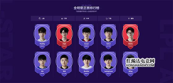 S11冠军EDG战队共有打野、中单、辅助三位选手包揽全明星周末正赛排行榜三个位置的榜首: