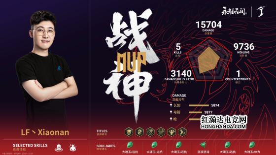 本局比赛战神给到LF丶Xiaonan,Xiaonan凭借着最后天海大师变身稳住军心,帮助LF斩获荣光功不可没。