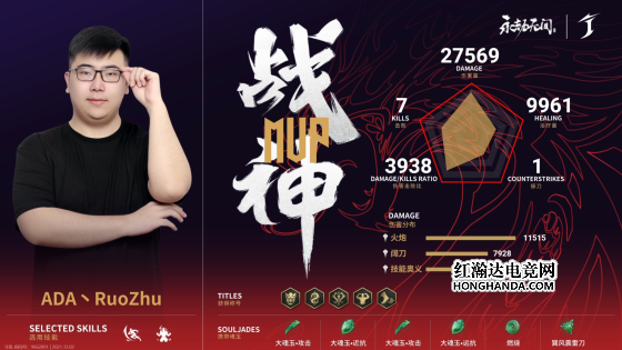 本局战神给到了ADA丶RuoZhu,虽然ADA战队没能笑到最后,不过27分击败分让ADA战队在本局拿到30分的高分,斩获荣光的ASE才仅拿到19.4分。