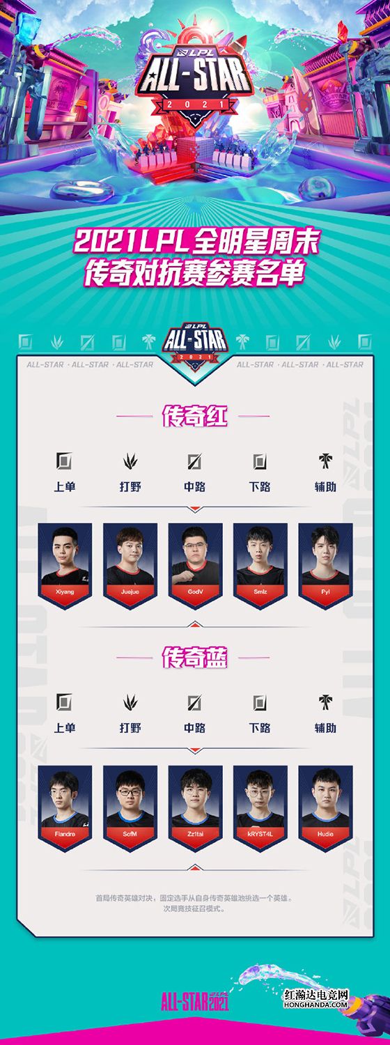 2021LPL全明星周末将于北京时间12月10日-12月12日在海南省海口市盛大开幕!12月11、12日为比赛阶段,其中广受关注的“传奇对抗赛”和“新生挑战赛”的名单都已经出炉:Xiyang、Juejue、GodV、Smlz、Pyl率领“传奇红”对阵Flandre、SofM、Zz1tai、kRYST4L、Hudie的“传奇蓝”!